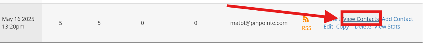 - You will be presented with a list of your databases. To the far right of each, you’ll see a column called “Action”. One of the links is “View Contacts”; select it (Fig 2).