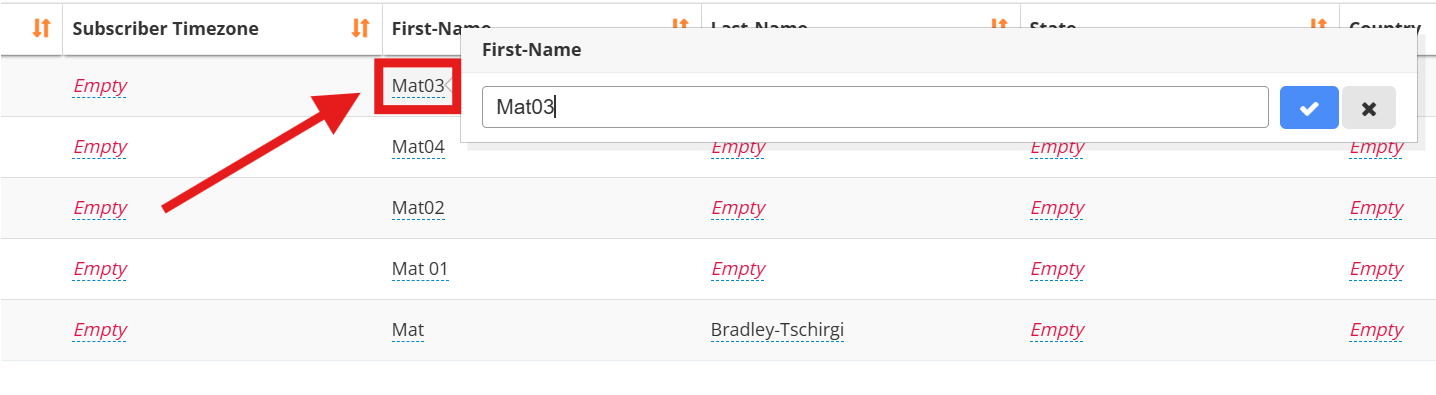 Most types of custom fields, like First-Name, allow you to enter any acceptable value after clicking on them (Fig 4).