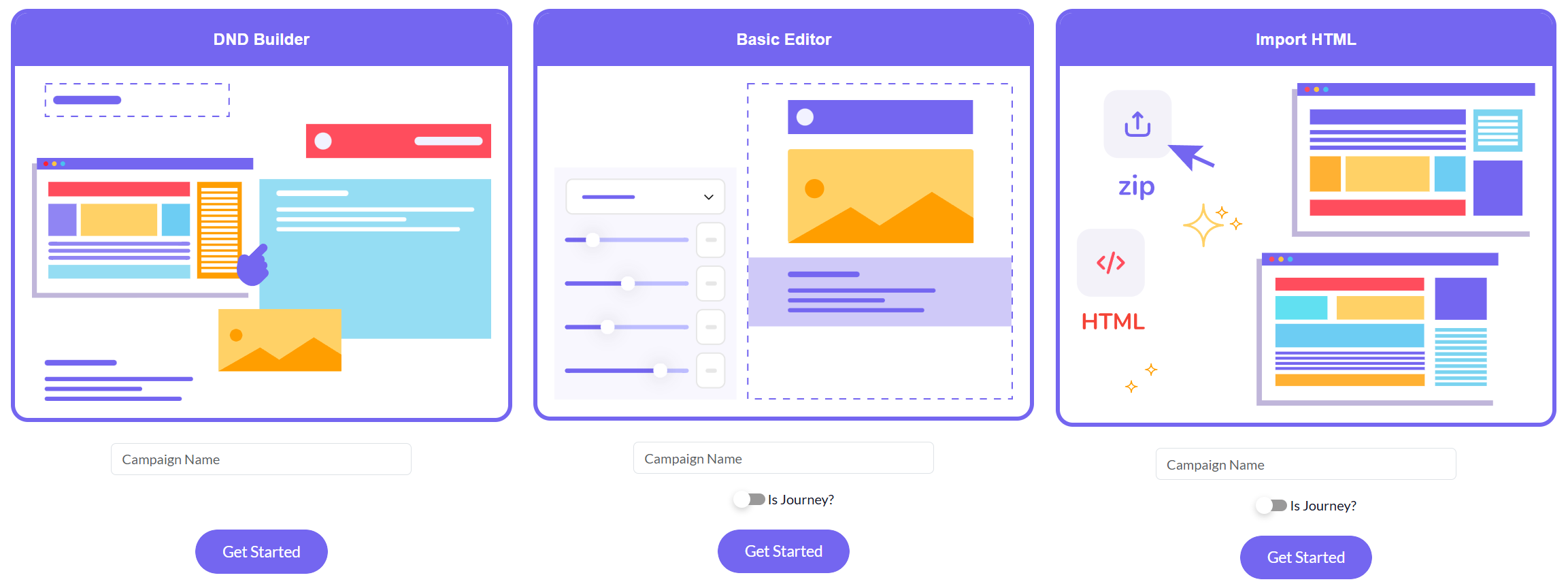 To start, give the campaign a name by filling in the "Campaign Name" field in either option, then click the blue "Get Started" button.