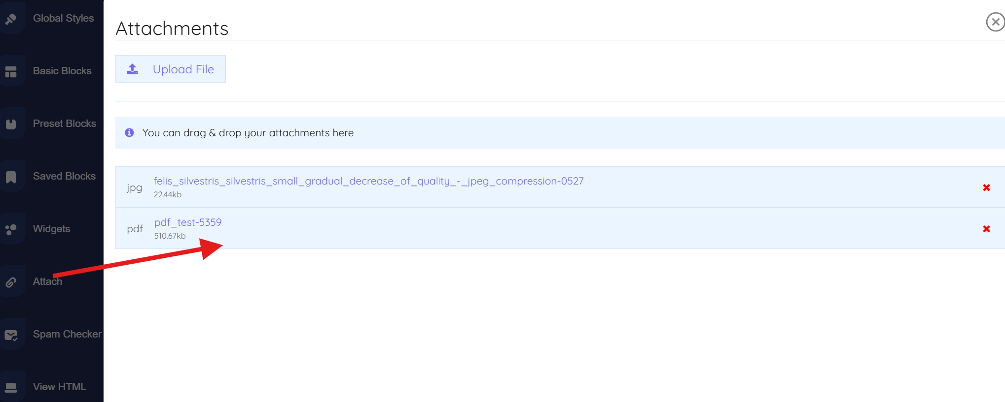 You can also drag and drop files from your computer to the Attachments window to upload them.