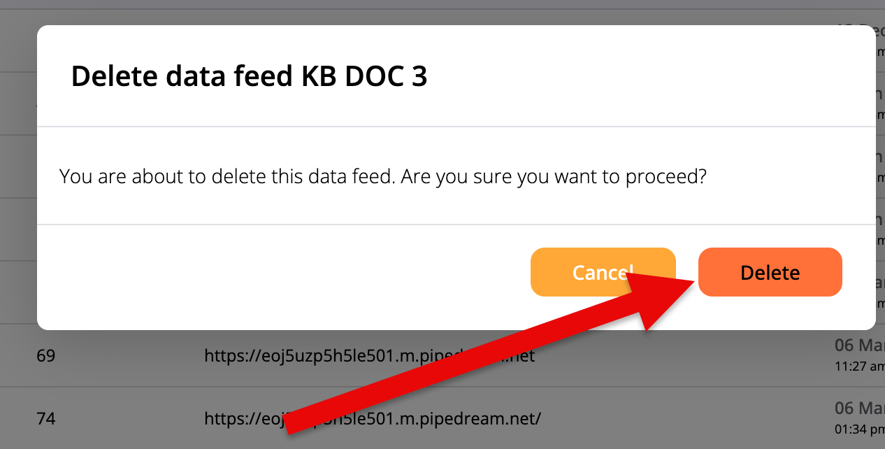If deleting the Data Feed is successful, you'll see a Success notification (Fig 3).
